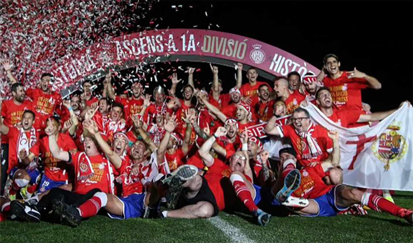2017年,三年前还在破产边缘挣扎的吉罗纳,百折不挠,于16/17赛季以西乙第二名的身份冲甲成功。